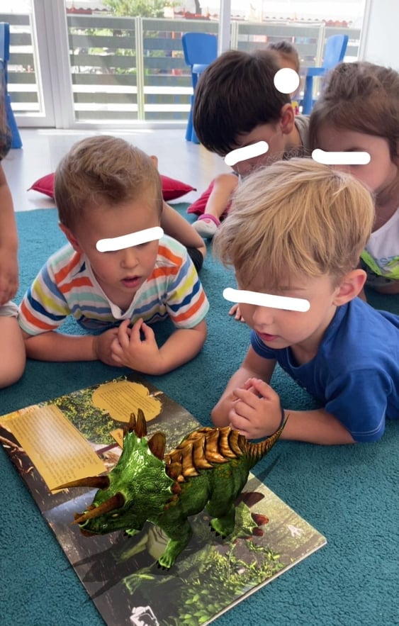 Κι όμως, μέσα από το βιβλίο «Οι δεινόσαυροι επιστρέφουν. Ο Ντίνος σε νέες περιπέτειες» της κ. Παπούλια, οι δεινόσαυροι ζωντάνεψαν και παρουσιάστηκαν μπροστά σε όλους μας! Μέσω της τεχνολογίας και του συγκεκριμένου βιβλίου, οι δεινόσαυροι εμφανίζονται σε τρισδιάστατη προβολή και καταφέραμε να παρατηρήσουμε και να σχολιάσουμε τα χαρακτηριστικά τους.